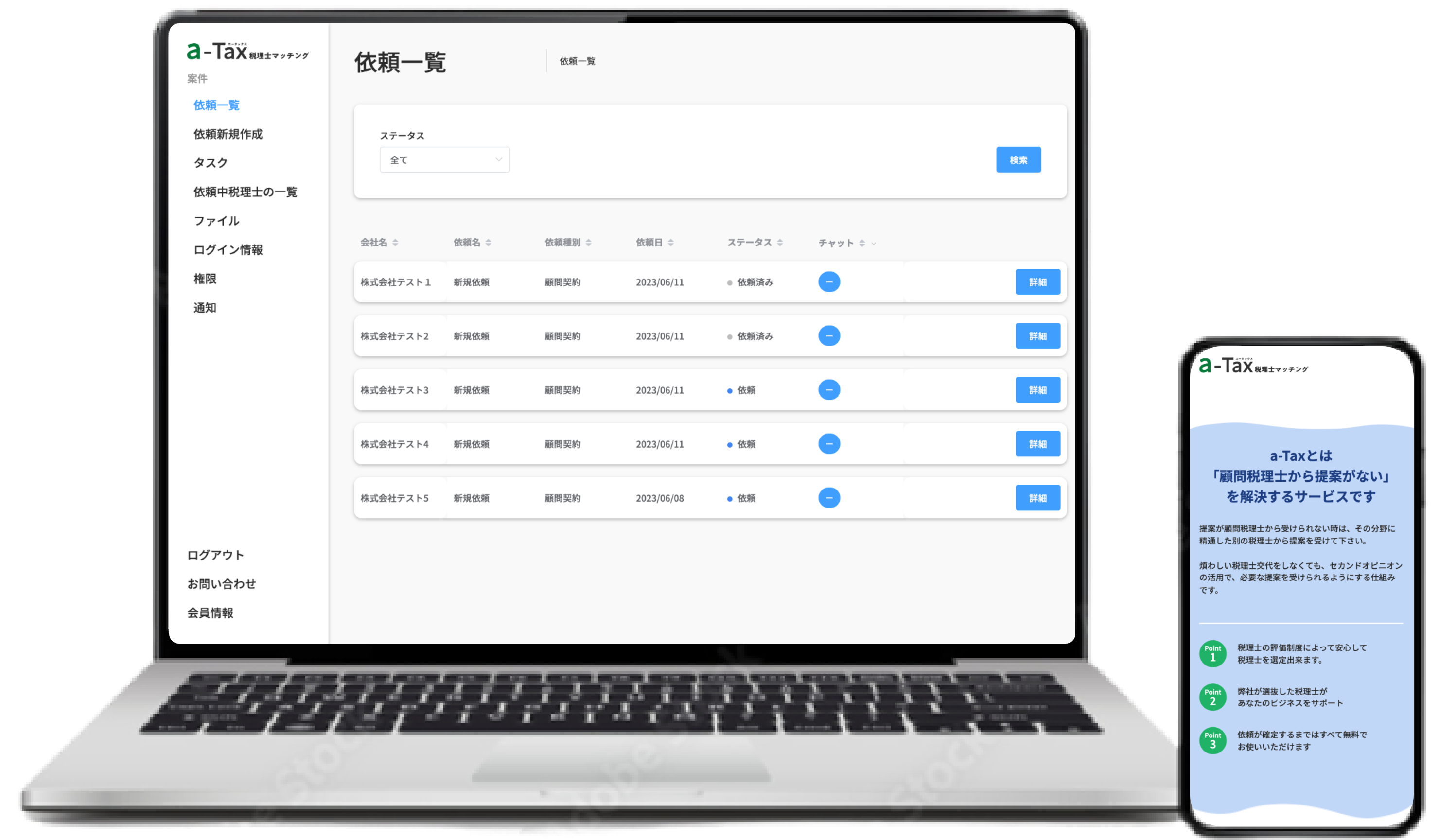 多くの社長は経営課題を顧問税理士に相談しますが、税理士の専門外の問題には対応が難しいことがあります。a-Tax顧問’sは、社長が経営課題を解決できる最適な専門家を全国から探すためのシステムです。
